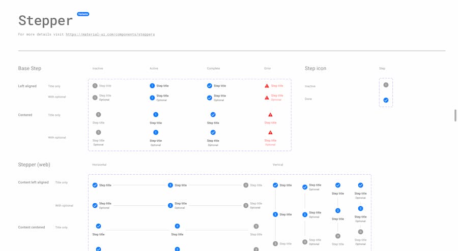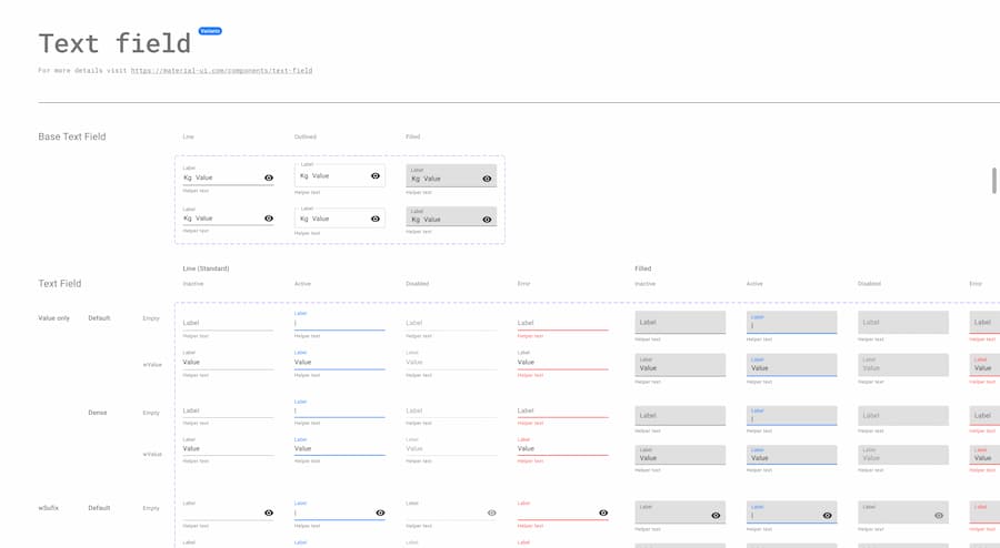 The Design kits contain many of the Material UI components with states, variations, colors, typography, and icons. We frequently update it to sync with the most up-to-date Material UI release.